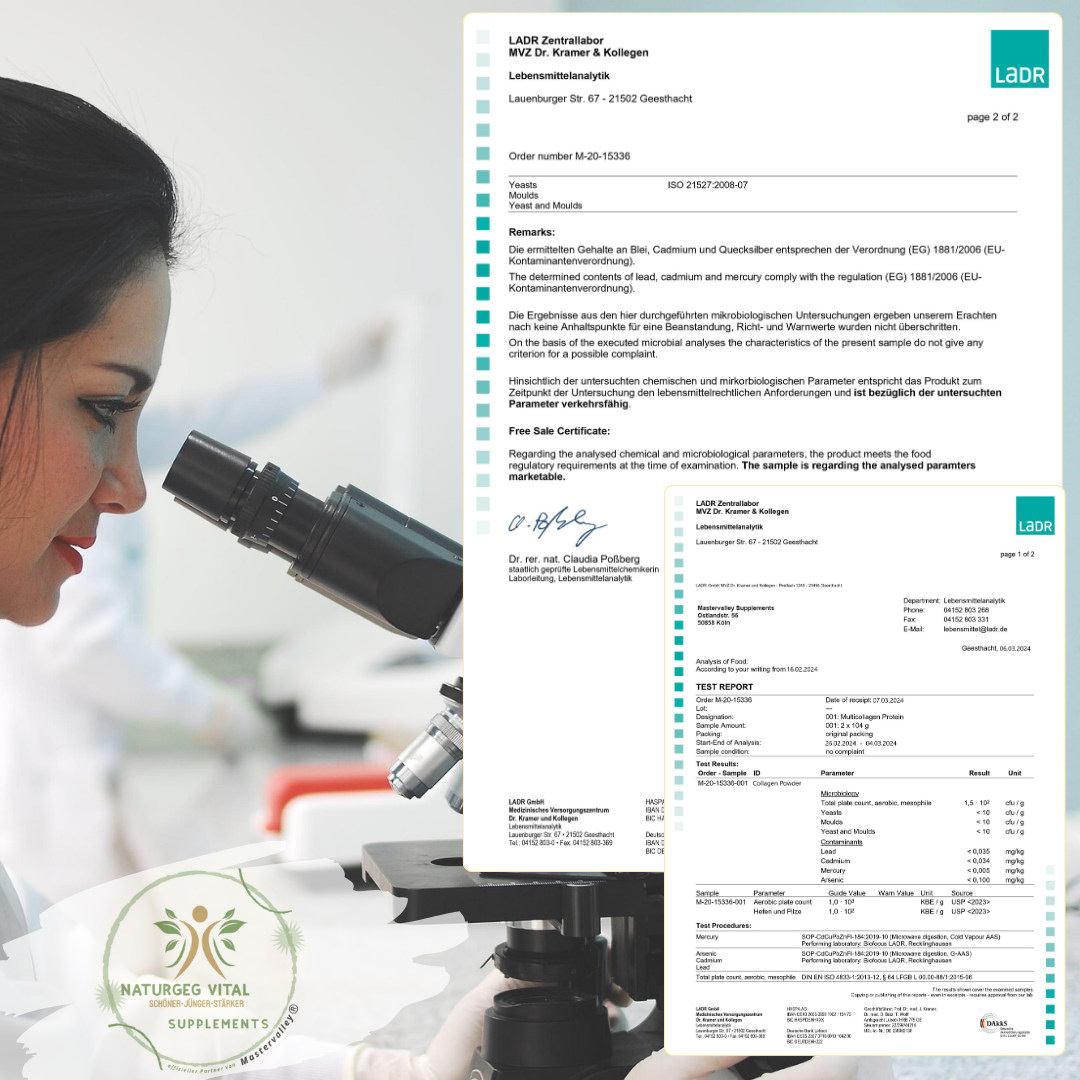 Alle unsere Produkte werden von unabhängigen Prüfinstituten auf Schwermetalle, mikrobiologische Belastungen und Wirkstoffgehalte untersucht. Dieses Versprechen geben wir Dir – transparent und nachvollziehbar.